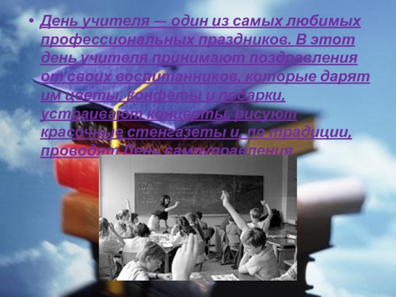 Слайд 2День учителя — один из самых любимых профессиональных праздников. В этот
