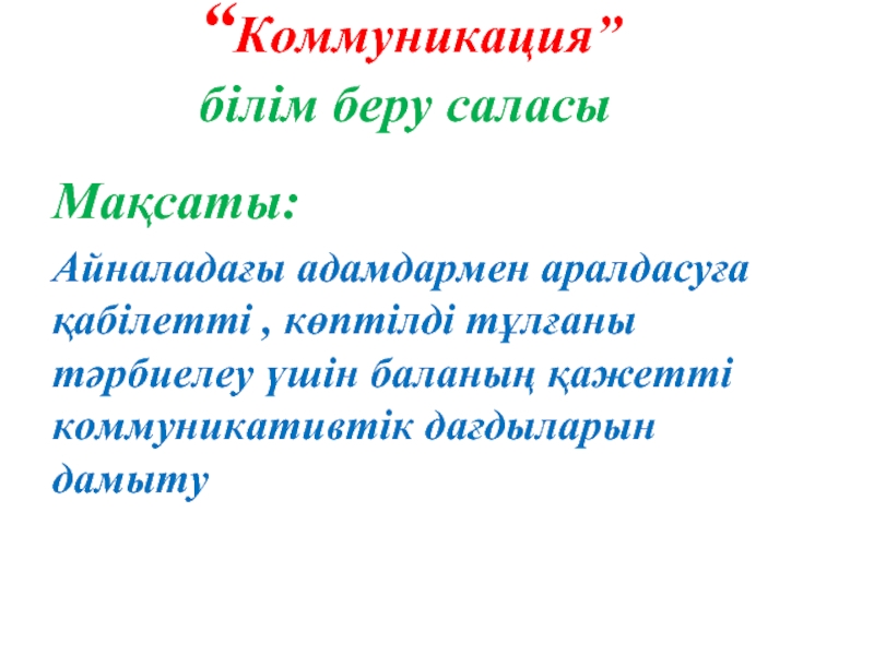 Айналадағы адамдармен аралдасуға қабілетті , көптілді тұлғаны тәрбиелеу үшін баланың қажетті коммуникативтік дағдыларын дамыту