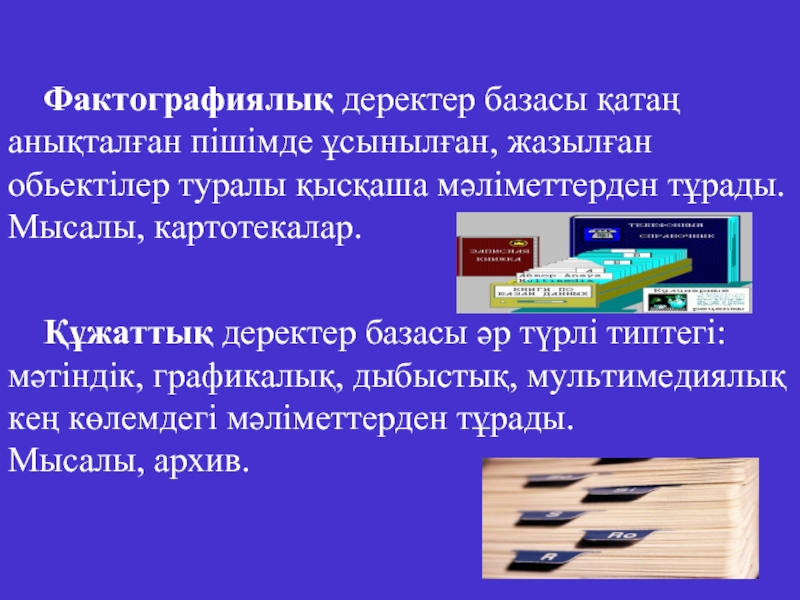 Құжаттық деректер базасы әр түрлі типтегі:
