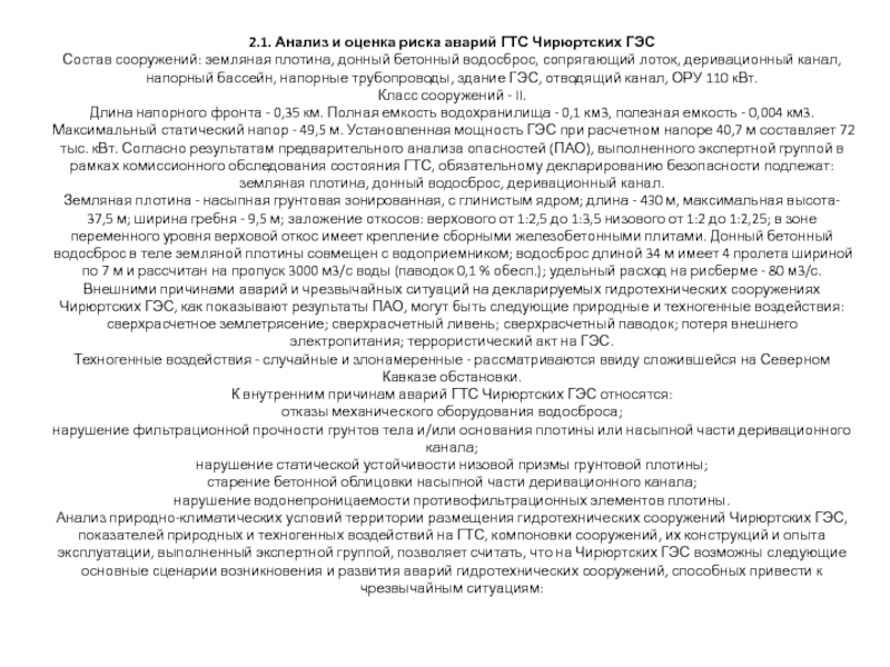 Слайд 52.1. Анализ и оценка риска аварий ГТС Чирюртских ГЭС