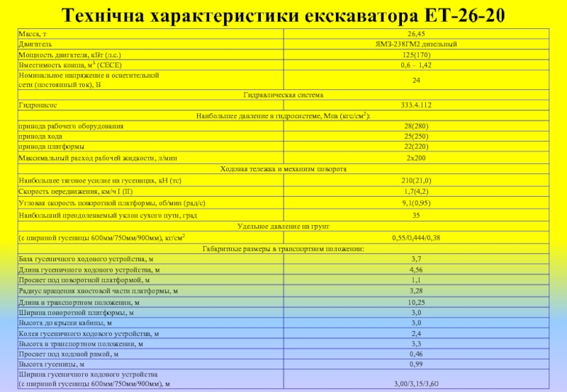 Слайд 52Технічна характеристики екскаватора ЕТ-26-20
