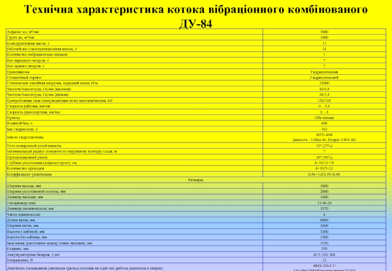 Слайд 24Технічна характеристика котока вібраціонного комбінованого