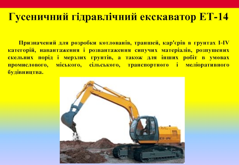 Призначений для розробки котлованів, траншей в ґрунтах I-IV