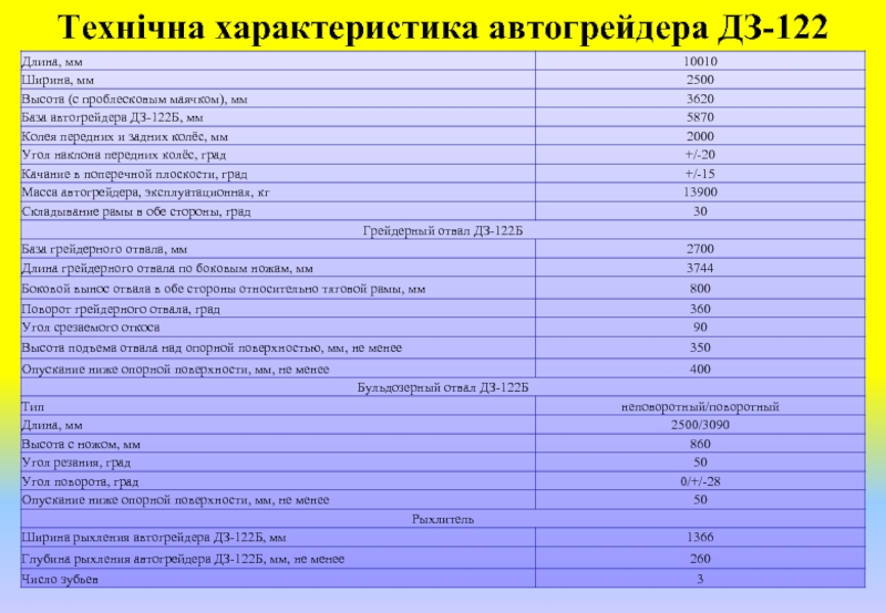 Слайд 13Технічна характеристика автогрейдера ДЗ-122