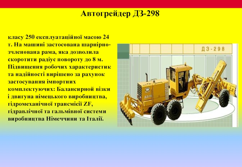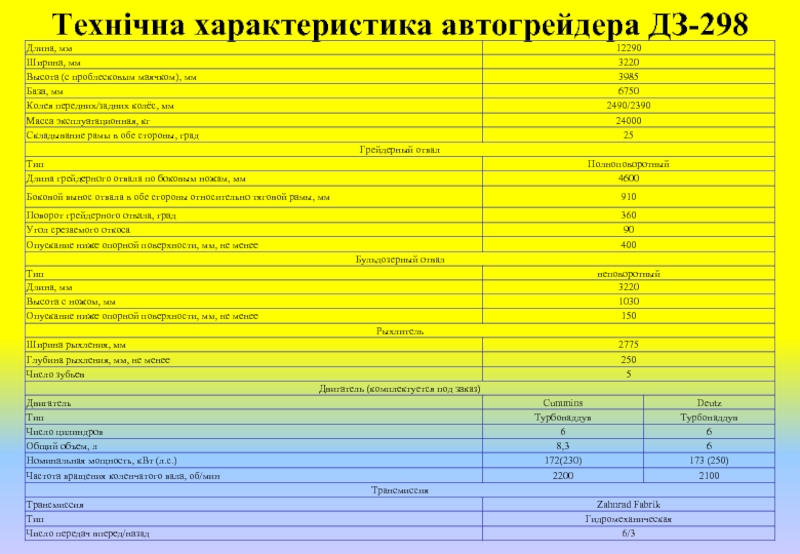 Слайд 17Технічна характеристика автогрейдера ДЗ-298