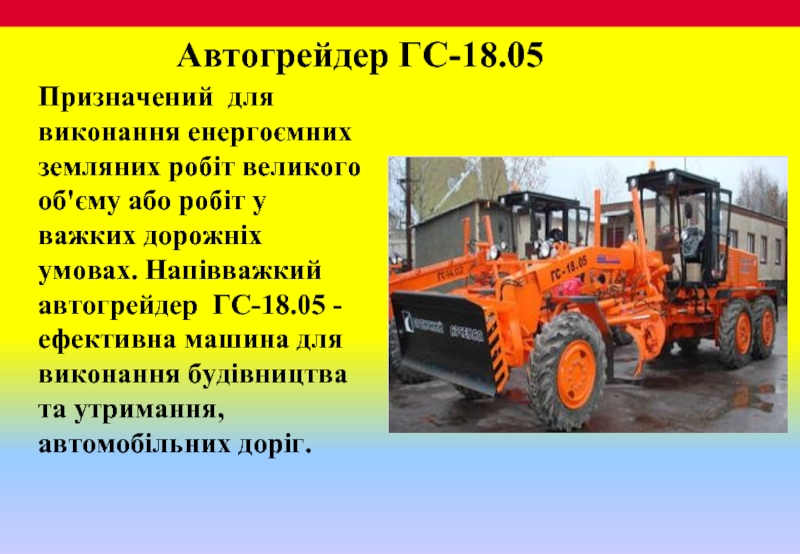 у важких дорожніх умовах. Напівважкий автогрейдер ГС-18.05 - ефективна машина для виконання будівництва та утримання, автомобільних доріг.