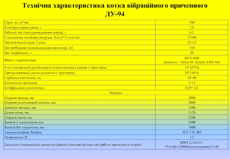 Слайд 34Технічна характеристика котка вібраційного причепного