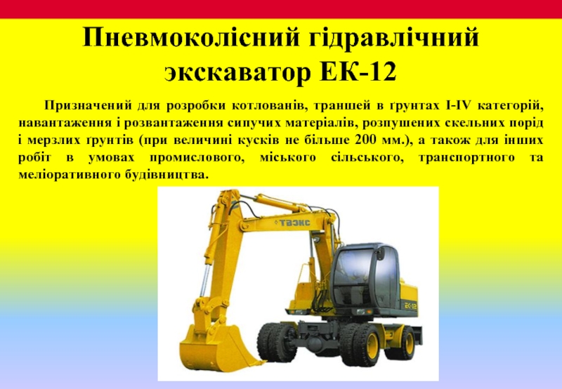 Слайд 53Пневмоколісний гідравлічний экскаватор ЕК-12