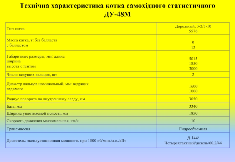 Слайд 22Технічна характеристика котка самохідного статистичного