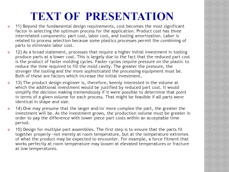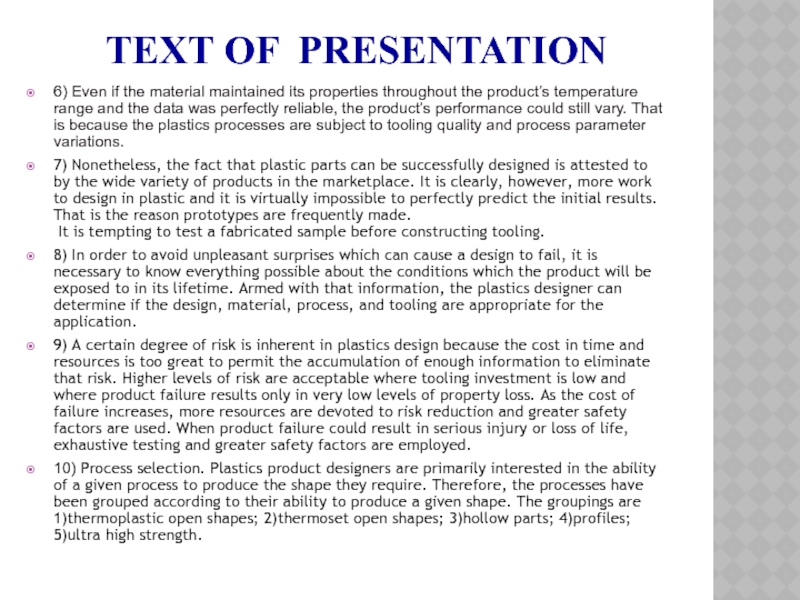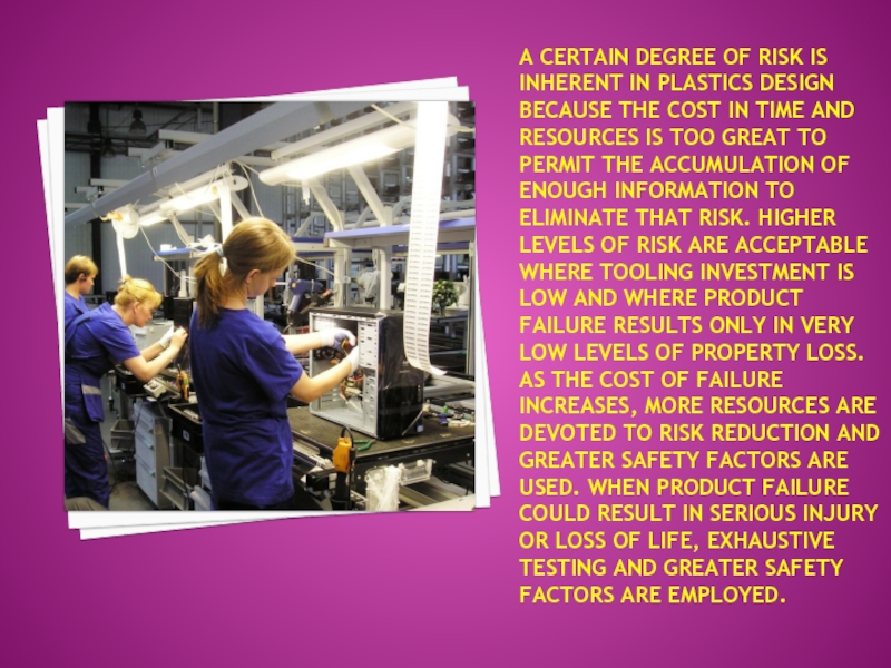 Слайд 10A CERTAIN DEGREE OF RISK IS INHERENT IN PLASTICS DESIGN BECAUSE