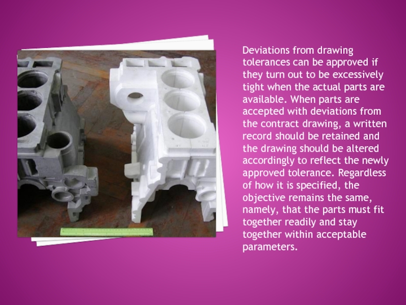 Слайд 19Deviations from drawing tolerances can be approved if they turn out