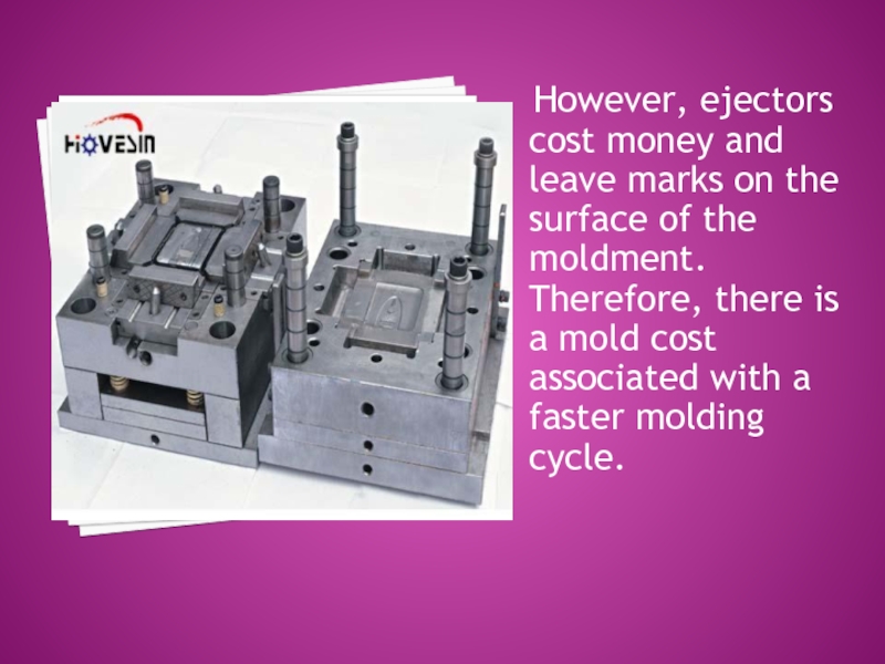 Слайд 24 However, ejectors cost money and leave marks on the surface