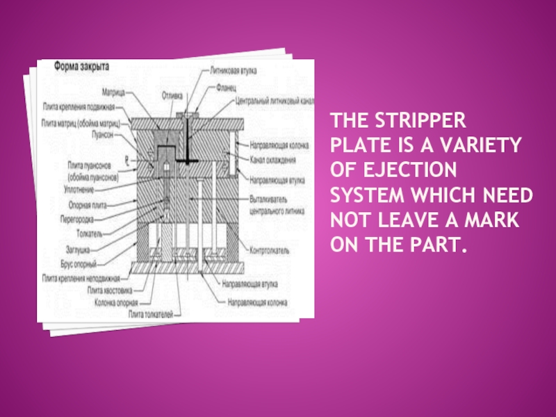 Слайд 25THE STRIPPER PLATE IS A VARIETY OF EJECTION SYSTEM WHICH NEED