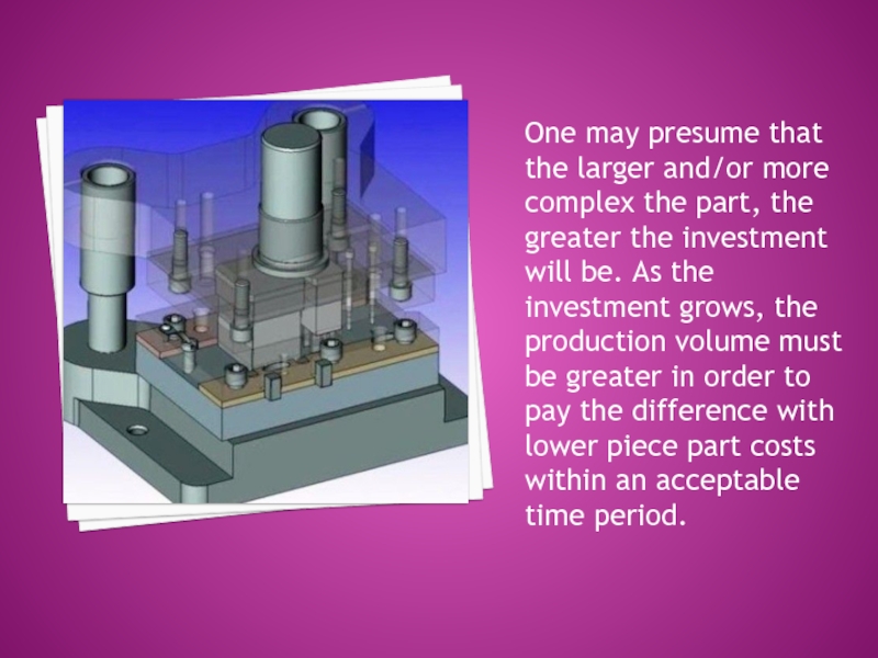 the greater the investment will be. As the investment grows, the production volume must be greater in order to pay the difference with lower piece part costs within an acceptable time period.
