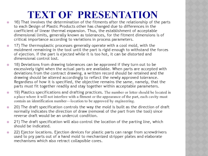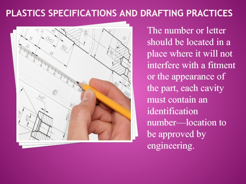 Слайд 20PLASTICS SPECIFICATIONS AND DRAFTING PRACTICES