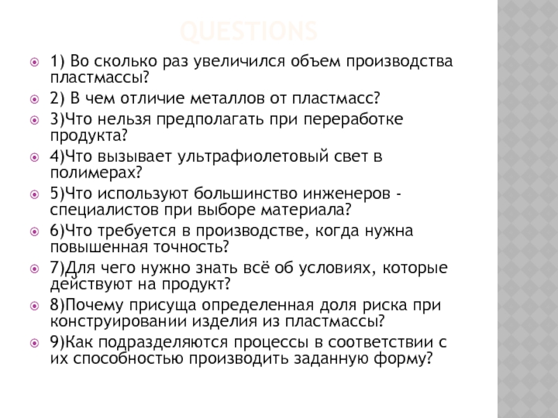 8)Почему присуща определенная доля риска при конструировании изделия из пластмассы?