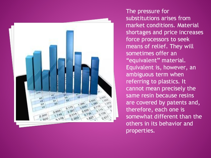 Слайд 28The pressure for substitutions arises from market conditions. Material shortages and