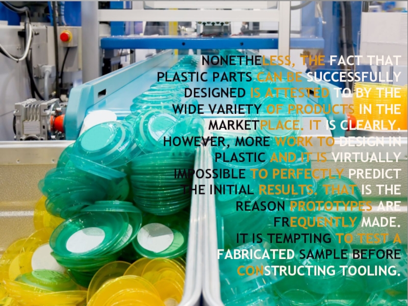 Слайд 8NONETHELESS, THE FACT THAT PLASTIC PARTS CAN BE SUCCESSFULLY DESIGNED IS
