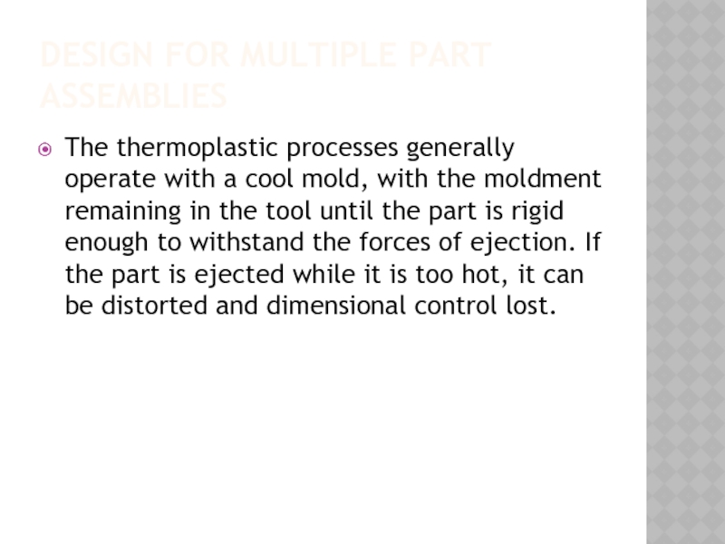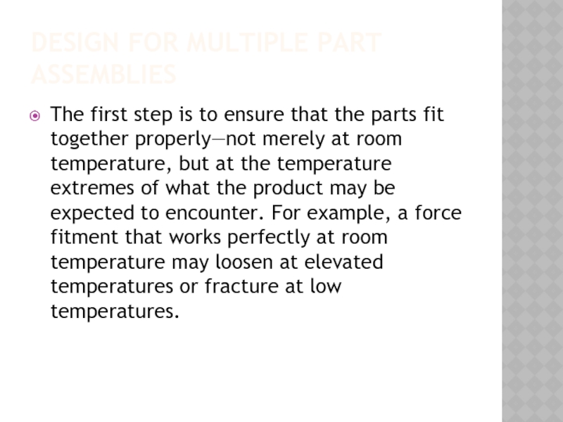 Слайд 18DESIGN FOR MULTIPLE PART ASSEMBLIES