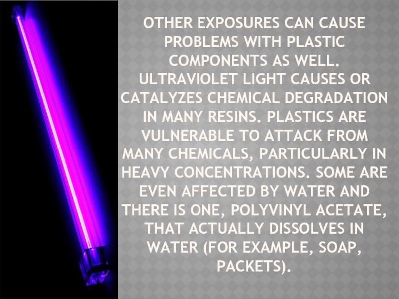 Слайд 5OTHER EXPOSURES CAN CAUSE PROBLEMS WITH PLASTIC COMPONENTS AS WELL. ULTRAVIOLET