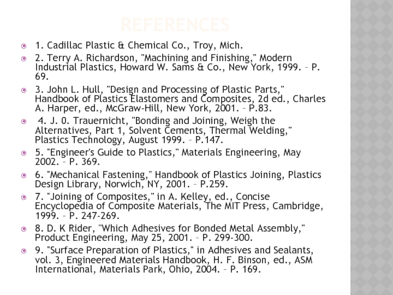 4. J. 0. Trauernicht, "Bonding and Joining, Weigh the Alternatives, Part 1, Solvent Cements, Thermal Welding," Plastics Technology, August 1999. – P.147.