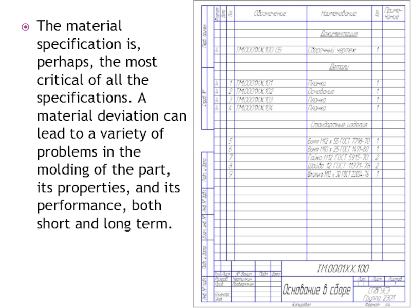 Слайд 27The material specification is, perhaps, the most critical of all the