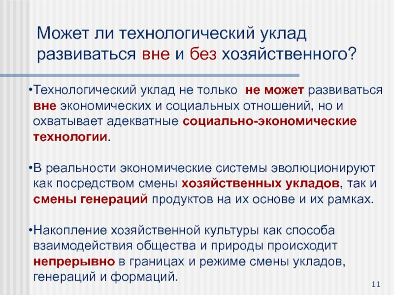 взаимодействия общества и природы происходит непрерывно в границах и циклическом режиме смены укладов, генераций и формаций.