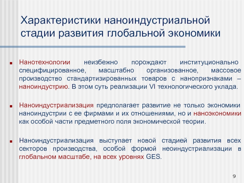 Слайд 9Характеристики наноиндустриальной стадии развития глобальной экономики