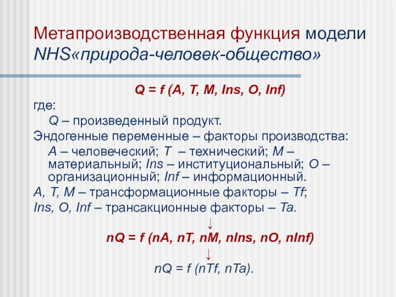Слайд 14Метапроизводственная функция модели NHS«природа-человек-общество»