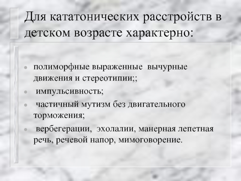 Слайд 8Для кататонических расстройств в детском возрасте характерно: