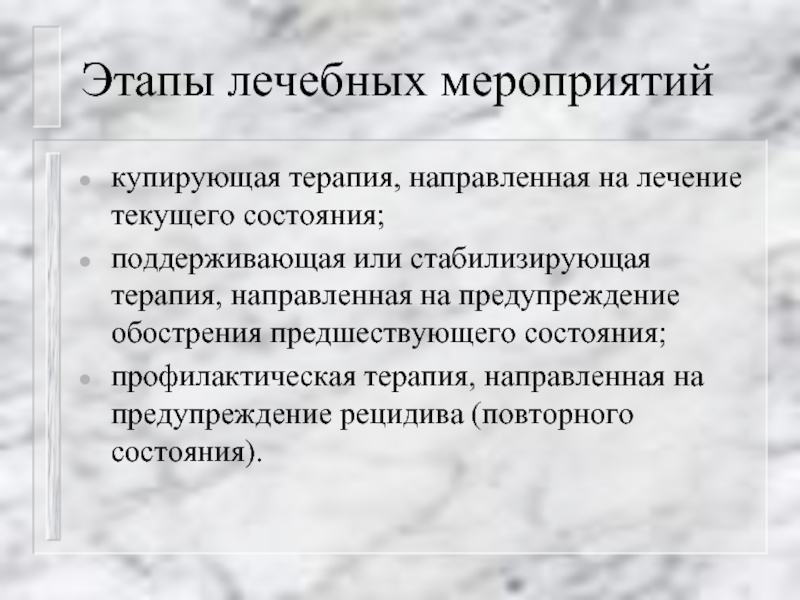 или стабилизирующая терапия, направленная на предупреждение обострения предшествующего состояния;