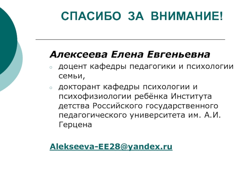 психологии и психофизиологии ребёнка Института детства Российского государственного педагогического университета им. А.И. Герцена
