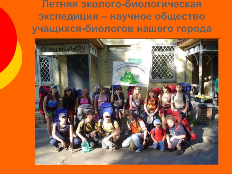 Слайд 9Летняя эколого-биологическая экспедиция – научное общество учащихся-биологов нашего города