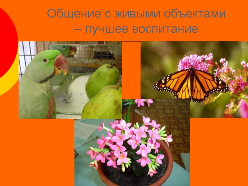 Слайд 20Общение с живыми объектами – лучшее воспитание
