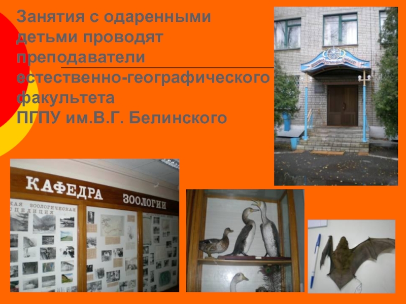 Слайд 8Занятия с одаренными детьми проводят преподаватели естественно-географического факультета ПГПУ им.В.Г. Белинского