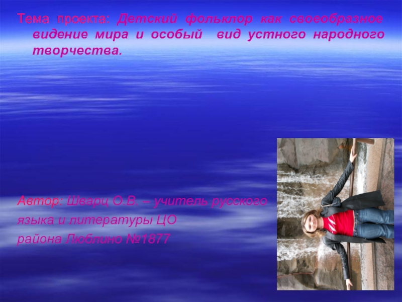 Слайд 2Тема проекта: Детский фольклор как своеобразное видение мира и особый вид