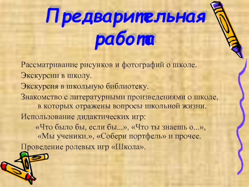«Что было бы, если бы...», «Что ты знаешь о...», «Мы ученики.», «Собери портфель» и прочее.
