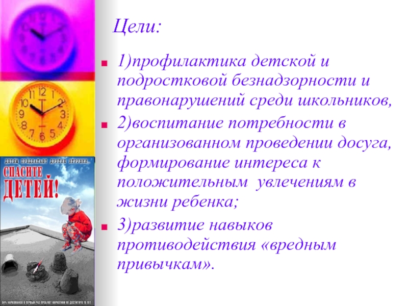 1)профилактика детской и подростковой безнадзорности и правонарушений среди школьников,