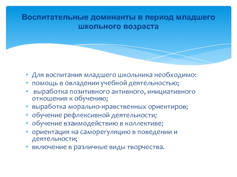 Воспитательные доминанты в период младшего школьного возраста