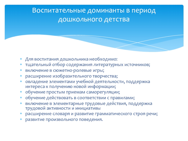 Воспитательные доминанты в период дошкольного детства