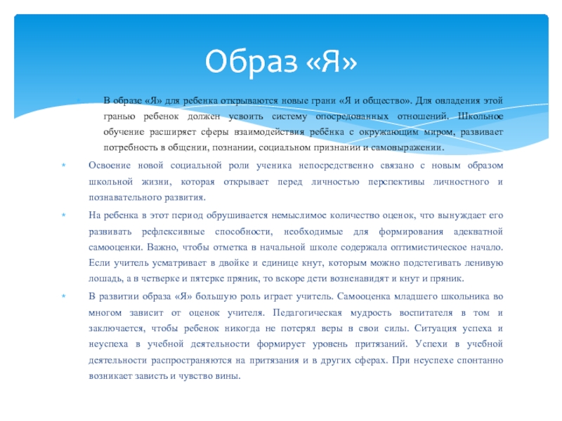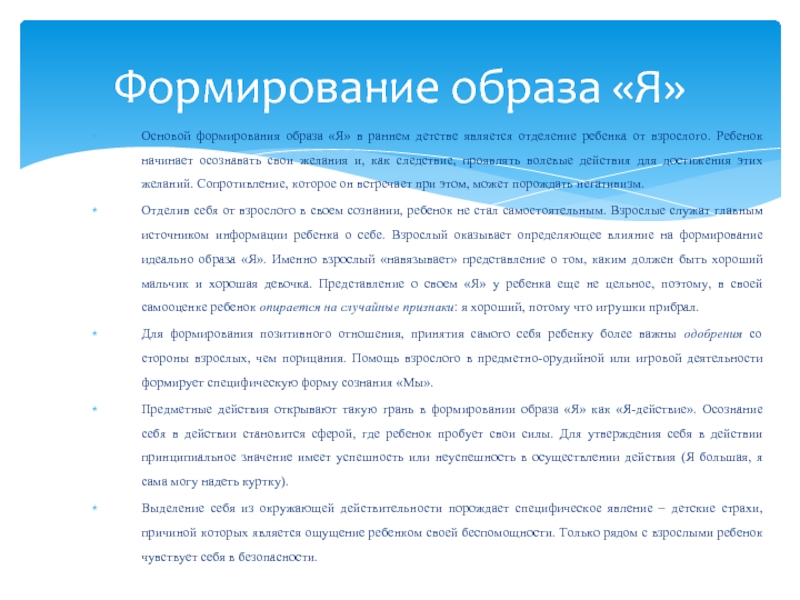 Формирование образа «Я»