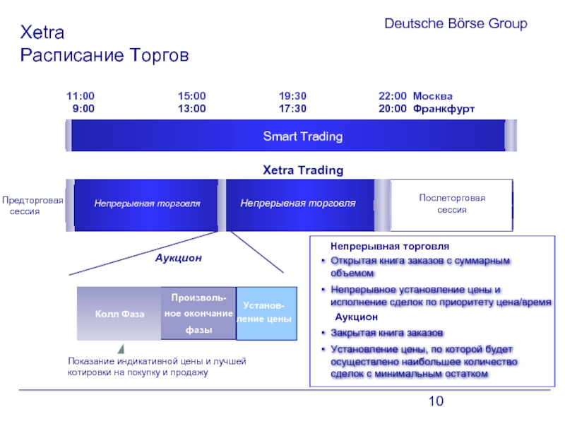 Торговля происходит на платформе Deutsche Börse - Xetra с 9:00 до 20:00 по центральноевропескому времени