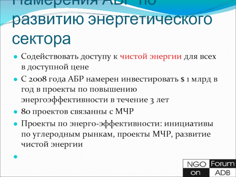 Слайд 9Намерения АБР по развитию энергетического сектора