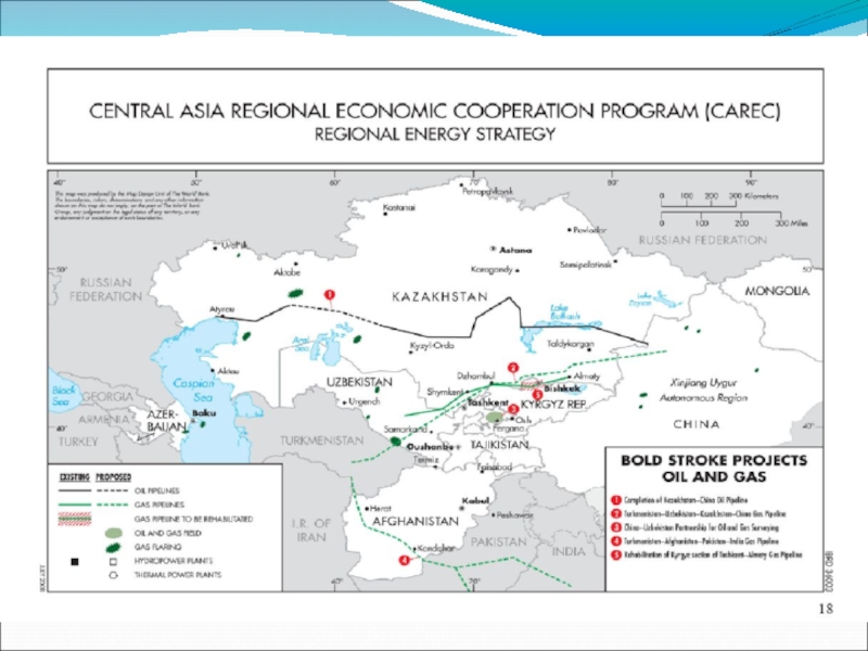Центральная Азия-Россия: большая часть экспорта нефти и газа до сих пор были ориентированы на Россию или через Россию на Запад.