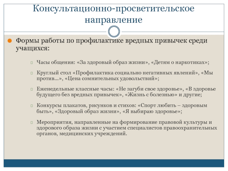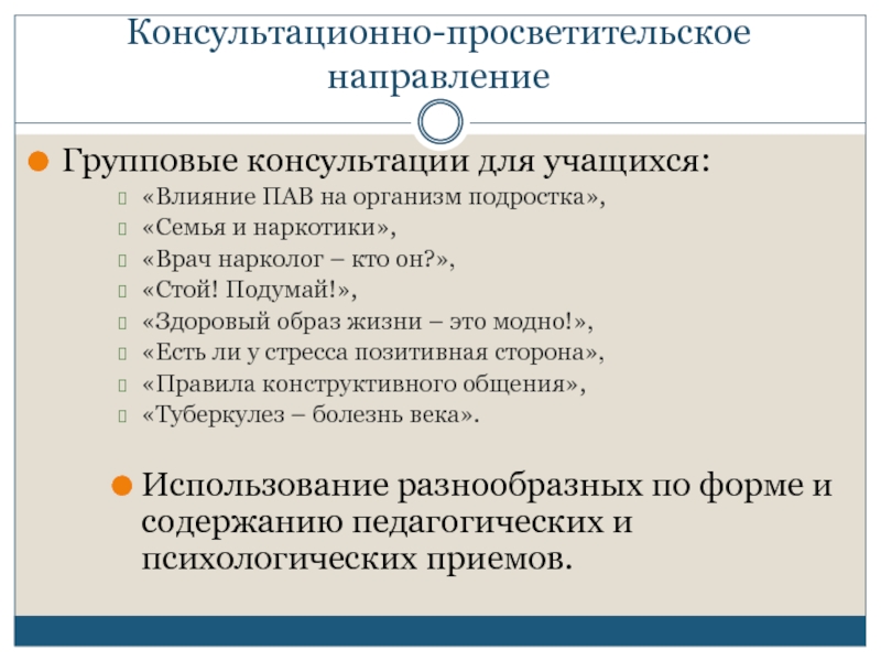 Слайд 8Консультационно-просветительское направление