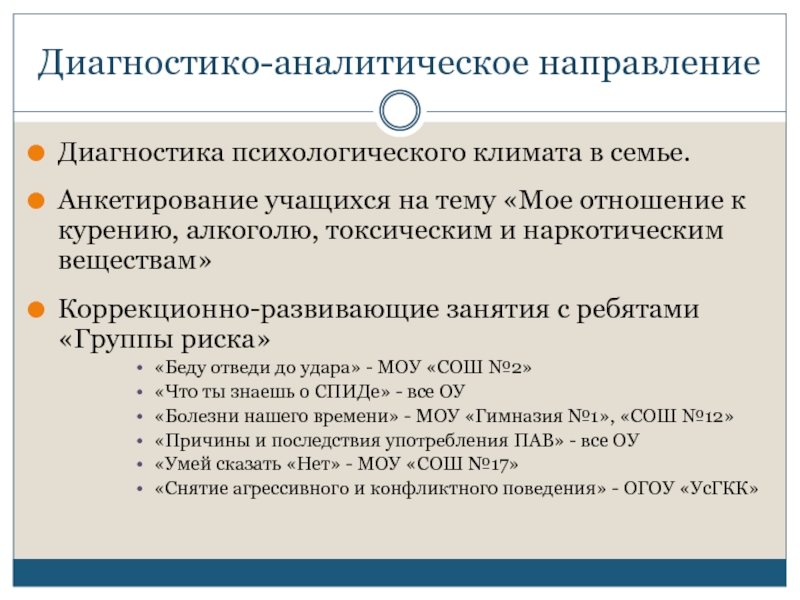Слайд 5Диагностико-аналитическое направление