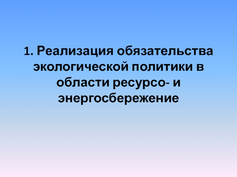 Слайд 61. Реализация обязательства экологической политики в области ресурсо- и энергосбережение
