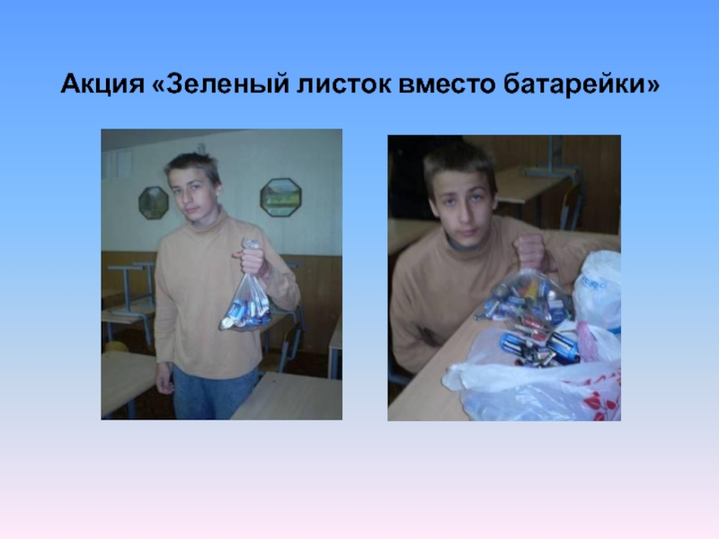 Слайд 13Акция «Зеленый листок вместо батарейки»
