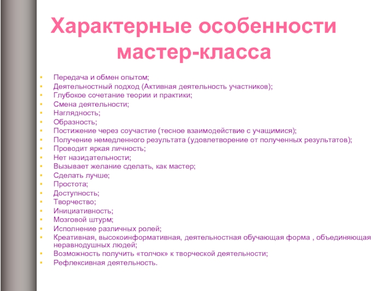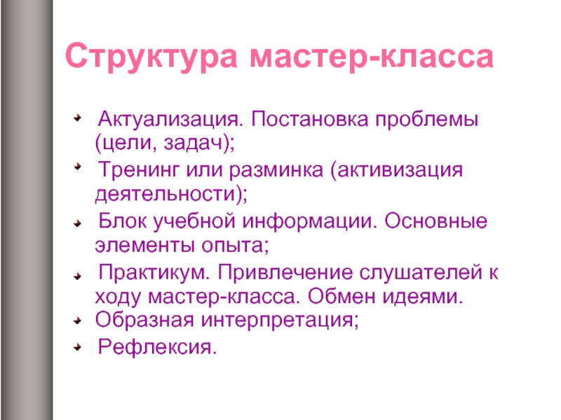Практикум. Привлечение слушателей к ходу мастер-класса. Обмен идеями. Образная интерпретация;