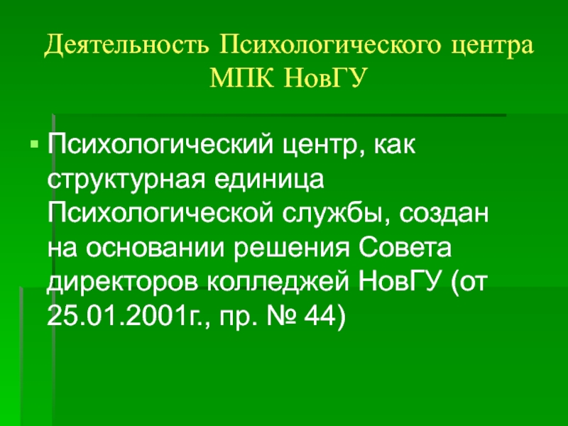 Психологический центр, как структурная единица Психологической службы,